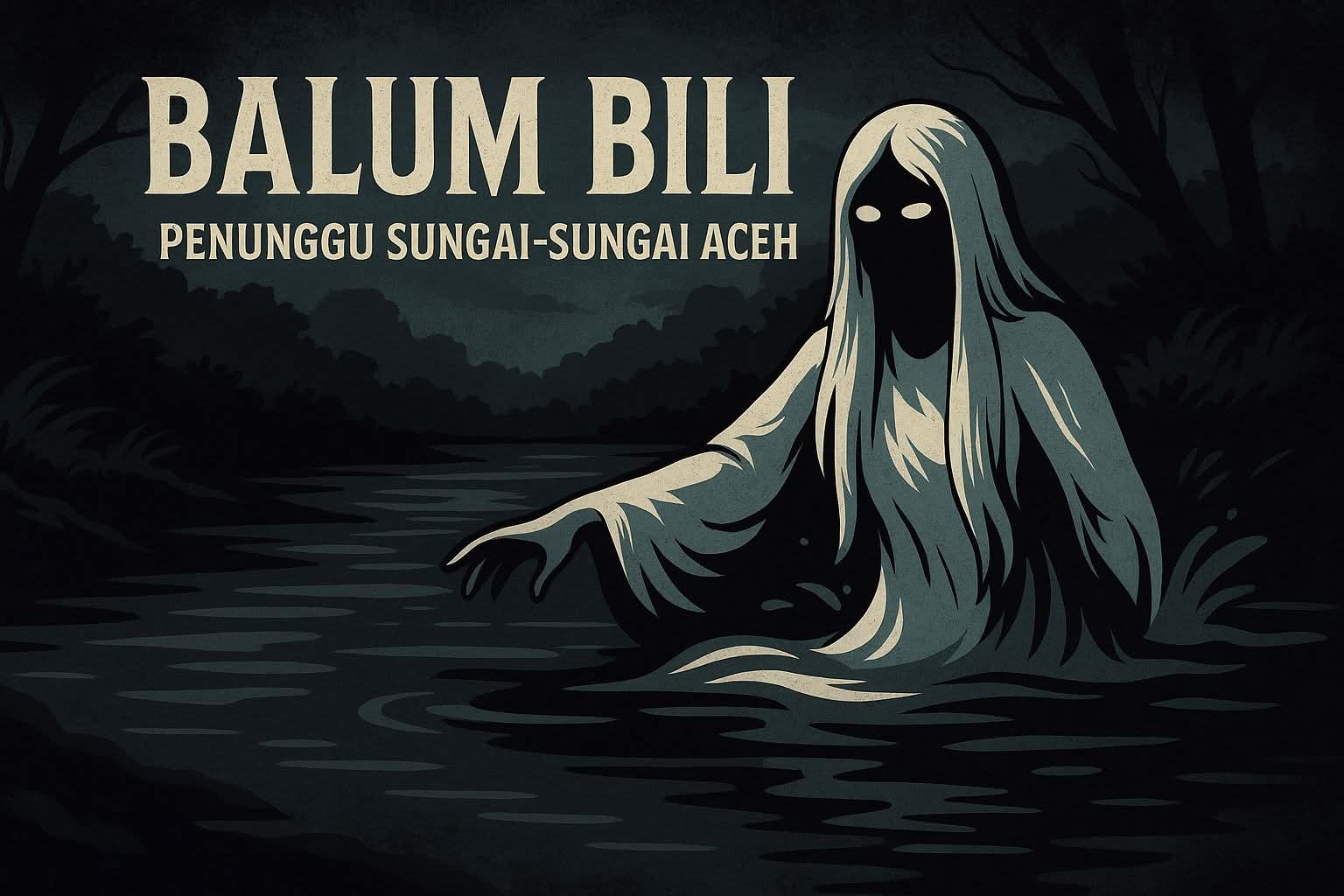 Apakah kamu mau saya tambahkan versi ilustrasi gambar horizontal 16:9 dengan tulisan judul “BALUM BILI: PENUNGGU SUNGAI ACEH” bergaya majalah mistis (gelap, bertekstur air dan kabut)?