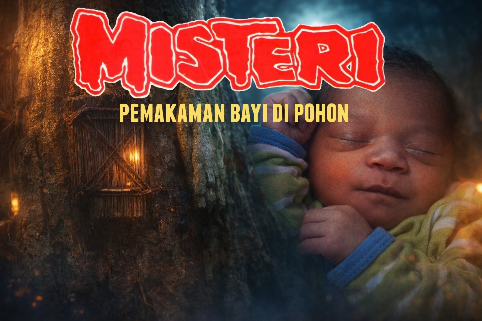 Bayi yang meninggal pada usia sangat dini—sebelum tumbuh gigi—dipandang masih suci. Mereka belum “mengenal dunia” sepenuhnya, sehingga kematiannya tidak diperlakukan sebagai kematian biasa. Tidak ada peti, tidak ada kain pembungkus. Tubuh bayi dimasukkan ke dalam lubang kecil yang dipahat pada batang pohon, lalu ditutup dengan serat alami. Seiring waktu, lubang itu akan menyatu kembali dengan batang pohon, seakan-akan sang bayi benar-benar kembali ke dalam rahim alam.